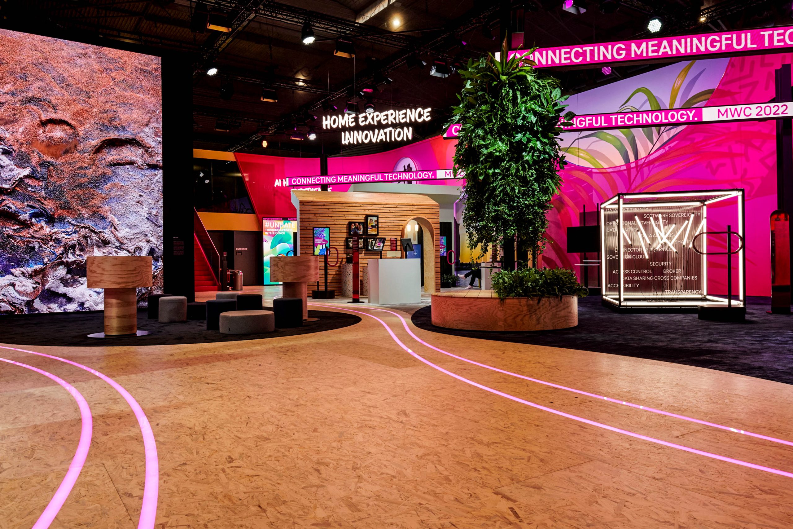 Für die Deutsche Telekom gestalteten wir auch dieses Jahr wieder Exponate für den Mobile World Kongress in Barcelona. Es war die erste große Messe nach der Pandemie.
